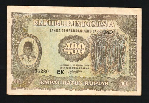 インドネシア 400 ルピア P35 1948 スカルノ シュガー オーストラリアン 通貨 お金 レア紙幣