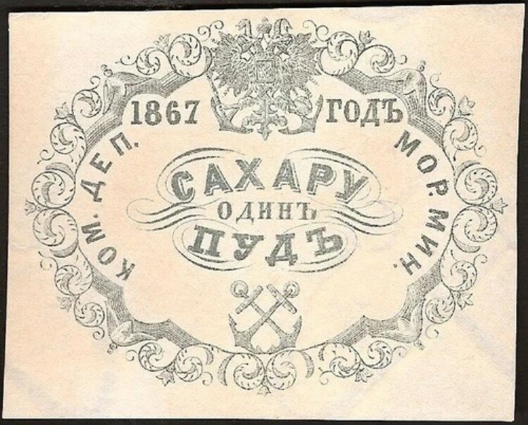ロシア 1プード砂糖 1867年 海事省領収書 非常に希少