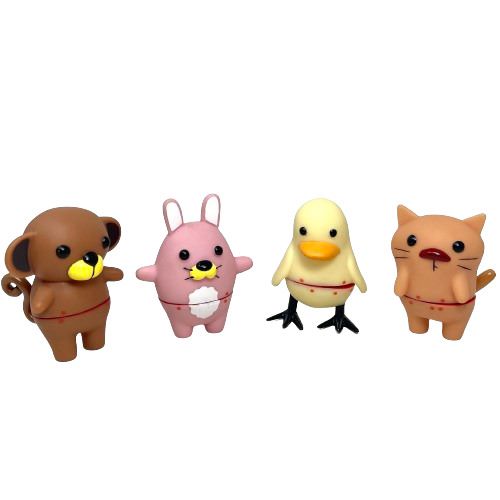 Halfsies Roman Mix & Match Figure 独特のデザインが魅力の4個セットのフィギュアです。 それぞれのキャラクターは、猿、ネコ、ウサギ、ヒヨコという動物たちをモチーフにしており、お腹部分には切れ目が入っており、そこから赤い線(血)が見えます。 上半身と下半身を別の動物に変えて遊ぶことが出来ます。 BOXサイズ 高さ約9cm 幅約26.4cm 奥行約5.3cm 本体サイズ 猿:高さ約7cm 幅約6cm 猫:高さ約6.5cm 幅約4.5cm ウサギ:高さ約7cm 幅約6cm ヒヨコ:高さ約6.5cm 幅約5.3cm 4個入り1セットです。 ※アメリカ輸入商品です。 生産段階での多少の製品誤差等が御座います。 多少の傷や塗装の剥げなどある場合がございます。 ご了承の上ご購入下さい。 【Halfsies Roman】【Figure】【ハーフシーズ ローマン】【動物】【猿】【ネコ】【ウサギ】【ヒヨコ】【フィギュア】【TOY】【おもちゃ】