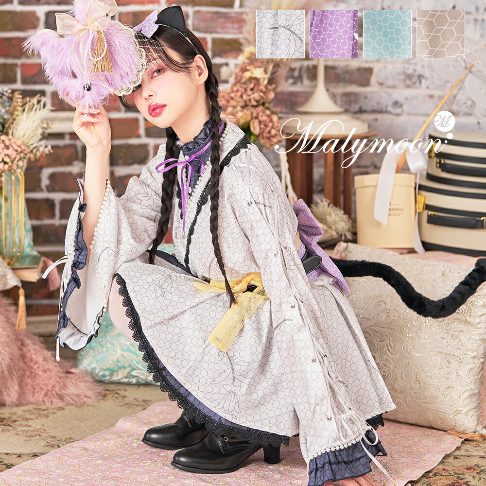 [正規品]【即納】大正ロマン 和服 和コス アニマル 動物 猫 ねこ 着物 和風 双子コーデ コスチューム ハロウィン ハロウィーン 女性 レディース 一式 マリームーン malymoon【s9910】