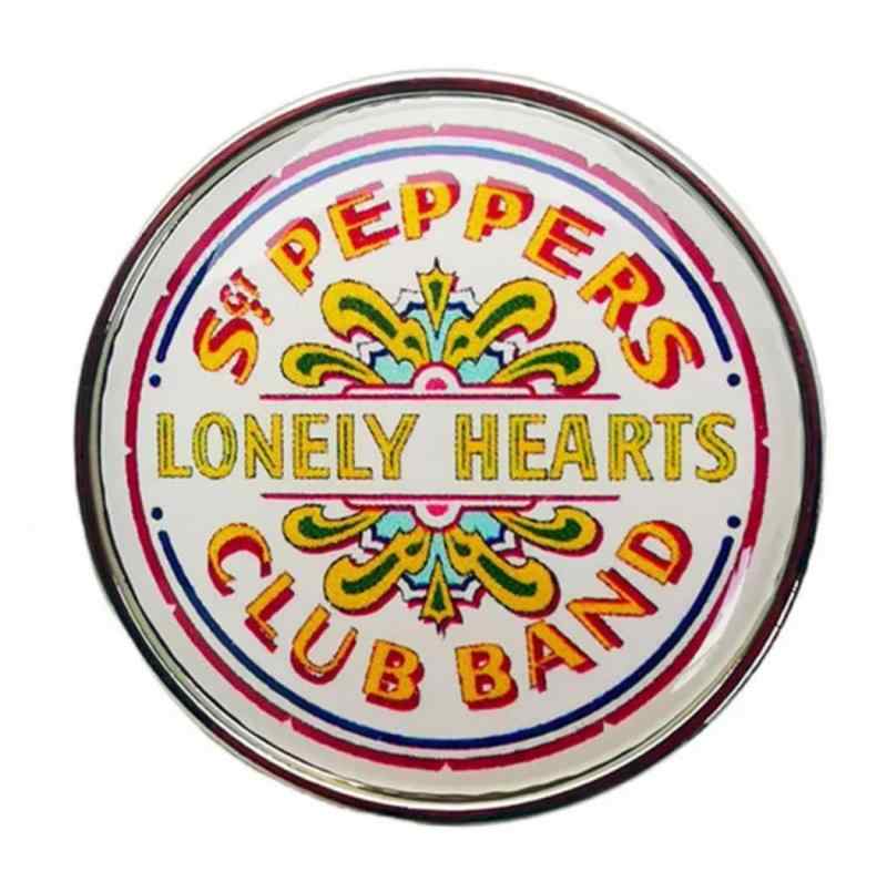 THE BEATLES / SGT. PEPPER'S LONELY HEARTS CLUB BAND (1967) 8作目のスタジオアルバム「Sgt. Pepper's Lonely Hearts Club Band」アルバムアートワーク中央に写っているバスドラムのデザイン。 ・材質 : Brass (真鍮), Soft Enamel (ソフトエナメル) ・Nickel plating (ニッケルメッキ) ・バッジサイズ : 25mm ・Butterfly Clutch ・Official Licensed - Apple Corps Ltd. 1,320円