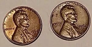 1964 D リンカーン ペニー。エラー。端に「L」の文字。 「IN GOD WE TRUST」の緊張感。 ?? ×2