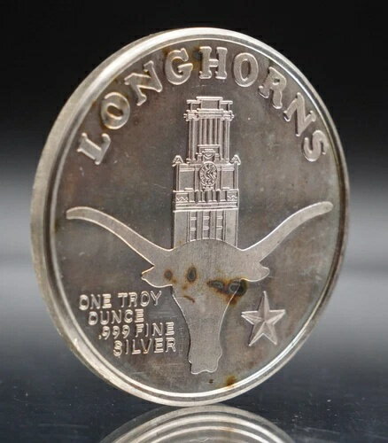 テキサス大学ロングホーンズ ローンスター UTタワーフラッグ 1オンス 999 シルバーラウンド C4788