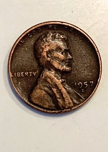 1957年 D リンカーン ウィート ペニー - 希少 - エッジに「L」エラーあり
