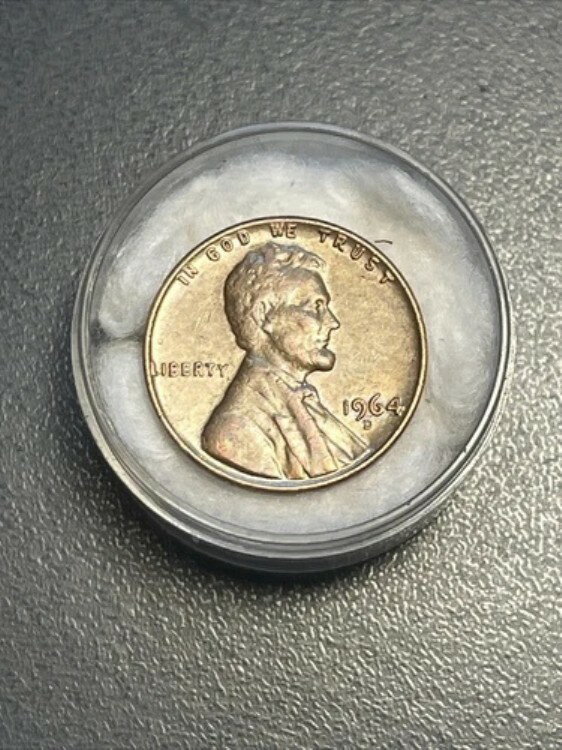 1964 D リンカーン ペニー。エラー。端に「L」の文字。 「IN GOD WE TRUST」の緊張感。