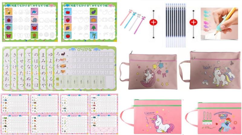 はじめてのあいうえお 何度でもできる くせのないきれいな字になるカタカナれんしゅうちょう ひらがな練習ドリル みぞなぞり絵練習ノート 【ピンクバッグ】●仕様: セット内容:ひらがなシート8枚 、カタカナシート8枚 、みぞなぞり絵トシート2枚 、ペン本体1本、マジック芯10本、プニュグリップ1つ、ファイルケース1つです。●特徴: 筆跡は数分程度で消え、ボードを洗う手間や消した後のカスが散らかる心配はない。ペンの正しい持ち方が自然に身に付くプニュグリッププレゼントいたします。 プニュグリップを使用すればペンの正しい持ち方が身につきます。更に、整理・持ち運びできるバッグをセットプレゼントいたします。わかりやすい書き順つきで、正しくきれいな文字・数字のお勉強用シートです。 何度でもくり返し練習ができ、楽しいので自ら進んで学習できます。