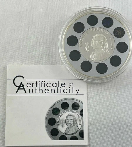 2014年 アンダース・セルシウス スターリングシルバー プルーフ 5ドルコイン/温度計