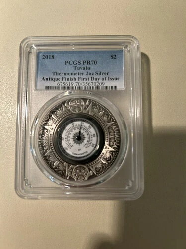 2018年 ツバル 温度計 2オンス 銀貨 2ドル PR69 アンティーク 初日発行
