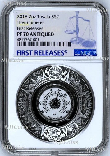 NGC PF70 FR ツバル 2018 温度計付きアンティークシルバーコイン 2オンス COA付き