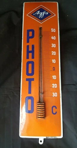 ヴィンテージの希少なAGFA写真と温度計サインのエナメル広告コレクターズアイテム