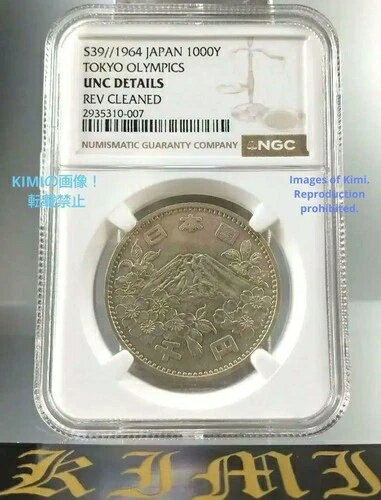 1000 Yen Sh?wa Olympics 1964 Summer Olympics, Tokyo NGC UND DETAILS REV CLENED商品について出品者メモ:「全体的に良好な状態ですが、経年による擦れ、キズ、汚れが多少あります。出品者メモの詳細をご確認ください。」額面:1000円流通/未使用:未使用素材:銀製造年:1964年認証番号:2935310-007グレード:未評価製造国/地域:日本認証:NGC注意事項※以下の注意事項をご理解のうえ、ご購入ください■ 鑑定済みコイン・紙幣について各種コイン・紙幣の鑑定機関(NGC、PCGS、PMGなど)は、収集品の真贋鑑定およびグレーディングを行う専門機関です。鑑定後の商品は、専用ケース(スラブ)に封入され、状態を示すグレードが付与されます。■ グレードについてグレードはコイン・紙幣自体の状態を評価するものであり、ケース自体の品質や状態を保証するものではありません。製造・輸送時の影響により、以下のような状態が発生する場合がございます。- 軽微なスレ傷・拭き傷(特に光の角度で見えるもの)- ケース内部のホコリ・小さな異物(鑑定機関の検品基準を満たしている場合)- ラベルのズレ・わずかな傾きこれらは鑑定機関の基準内であり、返品・交換の対象とはなりませんのでご了承ください。■ ラベルの種類について各鑑定機関では、コイン・紙幣の状態や鑑定の結果に応じて異なるラベルが付与されます。- 通常ラベル(Standard/Regular):一般的なグレード付き鑑定済みコイン・紙幣- オーセンティック(Authentic):グレードなしで真贋のみ保証- 詳細グレード(Details):クリーニング跡やエッジのダメージがあるが本物と認定- 特別ラベル(Special Label):記念版や特定のデザインの限定ラベル - 例:NGC「Early Releases」「First Releases」、PCGS「First Strike」 などグレードやラベルの種類は、商品画像および説明文をご確認のうえ、ご購入ください。■ 在庫状況について当店の商品は海外から取り寄せております。ご購入のタイミングによっては在庫切れとなる場合がございます。その際はご連絡のうえ、ご注文をキャンセルさせていただく場合がございますので、あらかじめご了承ください。■ ご注文後のキャンセルについてご注文と同時に商品のお取り寄せを開始するため、お客様都合によるキャンセルは承っておりません。■ 配送についてお届けまでに通常2〜3週間ほどかかります。海外の祝日や天候、税関手続きにより通常より配送が遅れる可能性がございます。■ 保証について商品説明に英語で「保証(warranty)」と記載があっても、日本国内では適用されませんのでご了承ください。 当店では、商品到着後7日以内の初期不良に限り、対応させていただきます。 (返品規約の詳細については、楽天市場内の会社概要欄下部をご参照ください。)■ 商品の色・素材感について撮影環境やモニター設定により、実際の商品と色味や質感が異なる場合がございます。■ 価格変動について希少性の高い商品は市場価格の変動により、追加料金をお願いする場合がございます。追加料金に同意いただけない場合には、ご注文のキャンセルが可能ですので、ご安心ください。■ その他サービスについて海外製品の輸入代行も承っております。ショップに掲載されていない商品でもお探し可能ですので、お気軽にご相談ください。尚、業者販売(業販)や複数購入の場合、割引対応も可能です。ご希望の方はお問い合わせください。