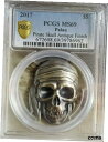 2017年 $5 パラオ共和国 海賊スカルアンティーク 仕上げシルバーコイン PCGS MS 692017 $5 Republic of Palau Pirate Skull Antique Finished Silver Coin PCGS MS 69