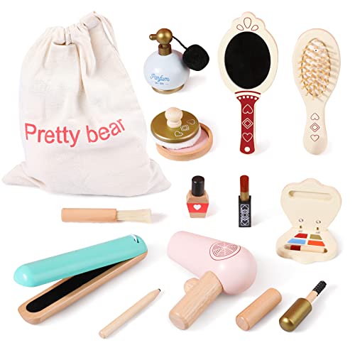 Wooden Teether メイクセット おもちゃ 木製 コスメ アップ 子供用 ままごと 化粧おもちゃセット 化粧品 美容院 12Pcs 3歳以上 女の子 収納簡単 キッズ おままごと 誕生日 プレゼント