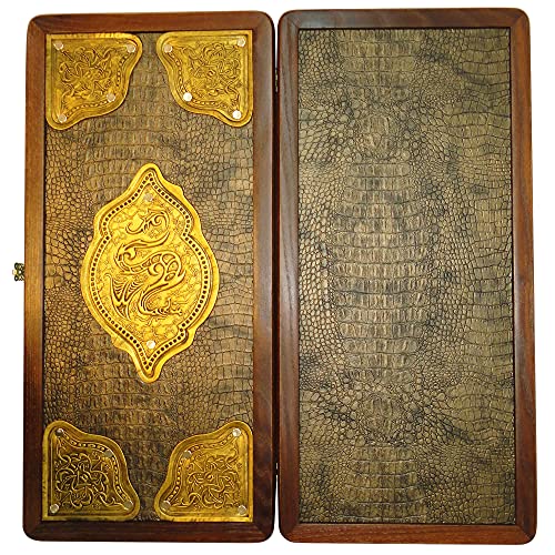 【中古】【未使用・未開封品】21" Tournament Panther Luxury Backgammon Set. Wooden Carved Board with Leather
