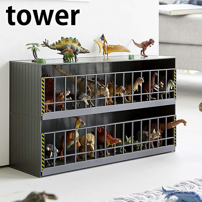 【12月5日はポイント最大10倍祭!】恐竜&アニマル収納ケージ タワー ワイド 2段 収納ラック ディスプレイラック フィギュア リアル模型 動物 恐竜 おもちゃ箱 見せる収納 コレクションケース 灰色 緑 グレー グリーン 5808 5809 tower 山崎実業 yamazaki ヤマジツ