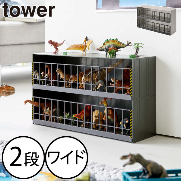 【12月5日はポイント最大10倍祭!】恐竜&アニマル収納ケージ タワー ワイド 2段 収納ラック ディスプレイラック フィギュア リアル模型 動物 恐竜 おもちゃ箱 見せる収納 コレクションケース 灰色 緑 グレー グリーン 5808 5809 tower 山崎実業 yamazaki ヤマジツ