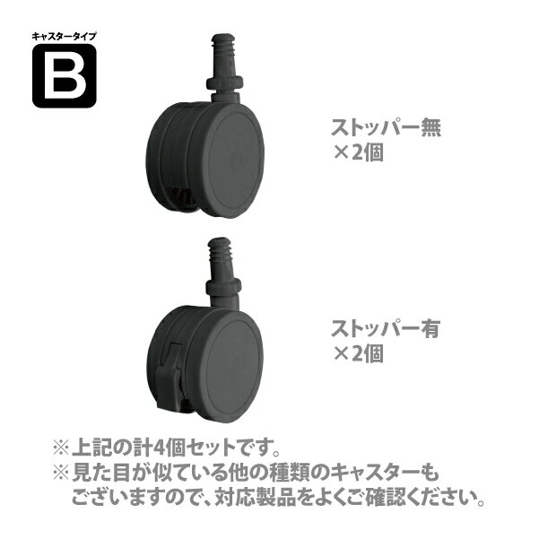 1181 【交換パーツ】 キャスタータイプB 2個&ストッパー付き2個セット ブラック 山崎実業 yamazaki