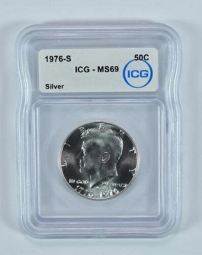 1976-S Kennedy Half Dollar Silver MS69 ICG 40%商品について認証:ICG種類:ストック額面:50Cグレード:MS69流通/非流通:非流通構成:銀張り発行年:1976年鋳造タイプ:ビジネス造幣局所在地:サンフランシスコ注意事項※以下の注意事項をご理解のうえ、ご購入ください■ 鑑定済みコイン・紙幣について各種コイン・紙幣の鑑定機関(NGC、PCGS、PMGなど)は、収集品の真贋鑑定およびグレーディングを行う専門機関です。鑑定後の商品は、専用ケース(スラブ)に封入され、状態を示すグレードが付与されます。■ グレードについてグレードはコイン・紙幣自体の状態を評価するものであり、ケース自体の品質や状態を保証するものではありません。製造・輸送時の影響により、以下のような状態が発生する場合がございます。- 軽微なスレ傷・拭き傷(特に光の角度で見えるもの)- ケース内部のホコリ・小さな異物(鑑定機関の検品基準を満たしている場合)- ラベルのズレ・わずかな傾きこれらは鑑定機関の基準内であり、返品・交換の対象とはなりませんのでご了承ください。■ ラベルの種類について各鑑定機関では、コイン・紙幣の状態や鑑定の結果に応じて異なるラベルが付与されます。- 通常ラベル(Standard/Regular):一般的なグレード付き鑑定済みコイン・紙幣- オーセンティック(Authentic):グレードなしで真贋のみ保証- 詳細グレード(Details):クリーニング跡やエッジのダメージがあるが本物と認定- 特別ラベル(Special Label):記念版や特定のデザインの限定ラベル - 例:NGC「Early Releases」「First Releases」、PCGS「First Strike」 などグレードやラベルの種類は、商品画像および説明文をご確認のうえ、ご購入ください。■ 在庫状況について当店の商品は海外から取り寄せております。ご購入のタイミングによっては在庫切れとなる場合がございます。その際はご連絡のうえ、ご注文をキャンセルさせていただく場合がございますので、あらかじめご了承ください。■ ご注文後のキャンセルについてご注文と同時に商品のお取り寄せを開始するため、お客様都合によるキャンセルは承っておりません。■ 配送についてお届けまでに通常2〜3週間ほどかかります。海外の祝日や天候、税関手続きにより通常より配送が遅れる可能性がございます。■ 保証について商品説明に英語で「保証(warranty)」と記載があっても、日本国内では適用されませんのでご了承ください。 当店では、商品到着後7日以内の初期不良に限り、対応させていただきます。 (返品規約の詳細については、楽天市場内の会社概要欄下部をご参照ください。)■ 商品の色・素材感について撮影環境やモニター設定により、実際の商品と色味や質感が異なる場合がございます。■ 価格変動について希少性の高い商品は市場価格の変動により、追加料金をお願いする場合がございます。追加料金に同意いただけない場合には、ご注文のキャンセルが可能ですので、ご安心ください。■ その他サービスについて海外製品の輸入代行も承っております。ショップに掲載されていない商品でもお探し可能ですので、お気軽にご相談ください。尚、業者販売(業販)や複数購入の場合、割引対応も可能です。ご希望の方はお問い合わせください。