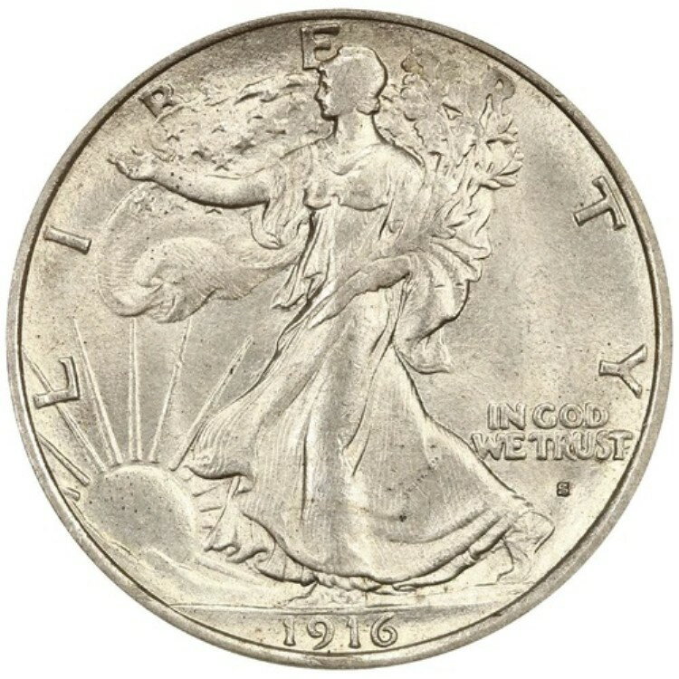 1916-S 50C PCGS MS64 CAC ウォーキング・リバティ・シルバー・ハーフダラー 21771824