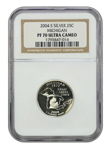 2004-S 25C ミシガン NGC PR70DCAM (シルバー) - ワシントン州 50 州 25セント硬貨