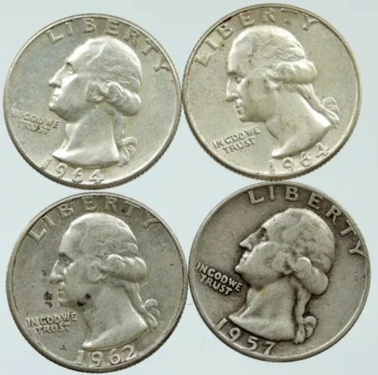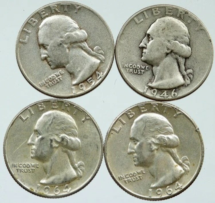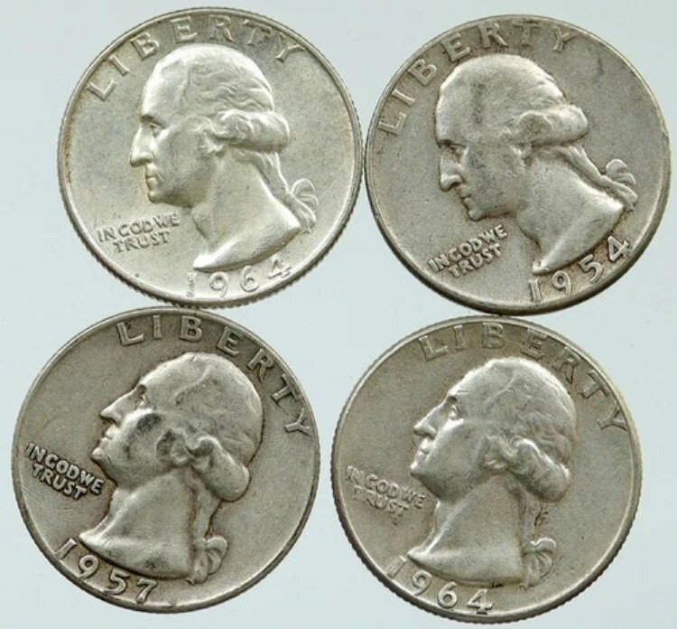アメリカ合衆国大統領ワシントン記念銀貨 25セント硬貨 4枚セット i116153