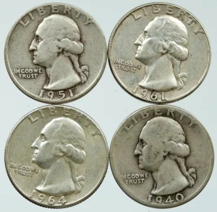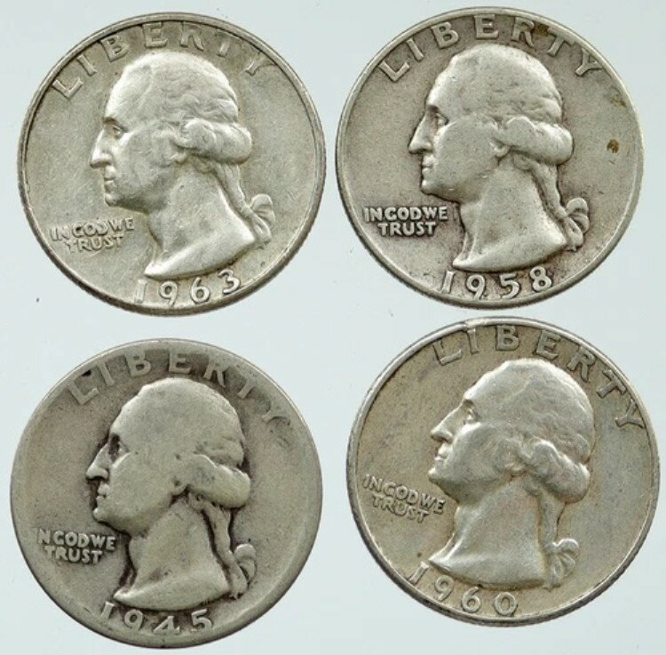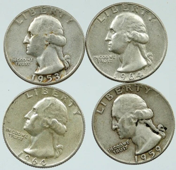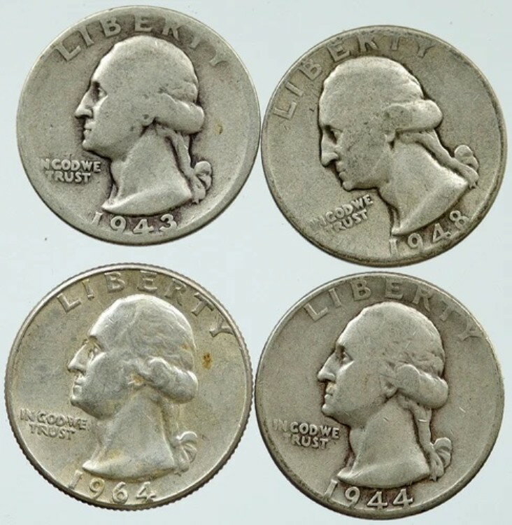 アメリカ合衆国大統領ワシントン記念銀貨 25セント硬貨 4枚セット i116167