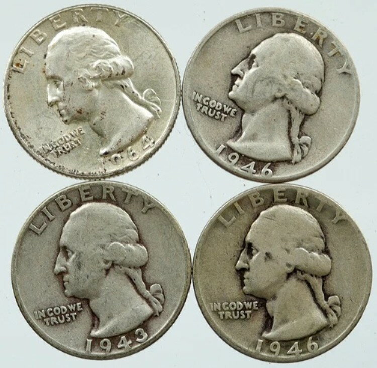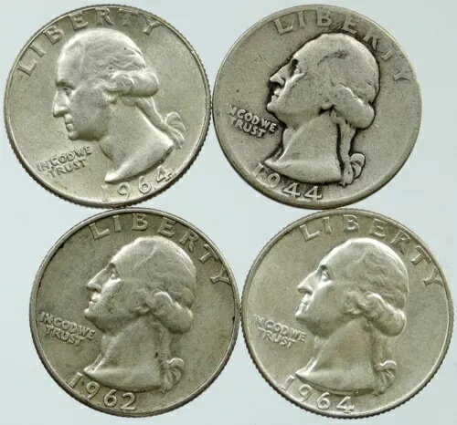アメリカ合衆国大統領ワシントン記念銀貨 25セント硬貨 4枚セット i116373
