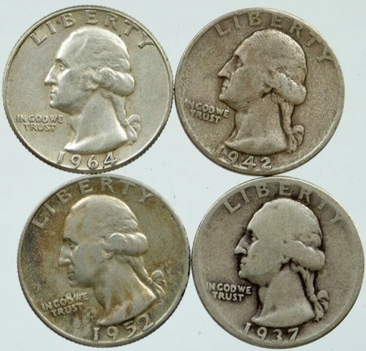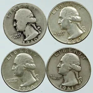 アメリカ合衆国大統領ワシントン記念銀貨 25セント硬貨 4枚セット i116149