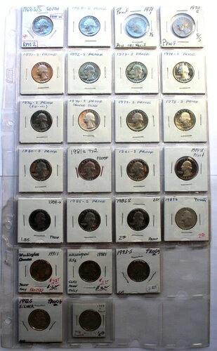 アメリカ合衆国 1968年 - 1993年 ワシントン州 25セント硬貨 25枚セット(宝石付き、銀貨少々)