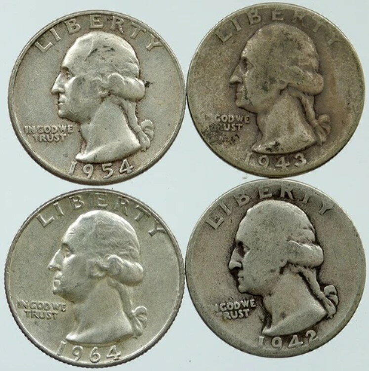 アメリカ合衆国大統領ワシントン記念銀貨 25セント硬貨 4枚セット i116195