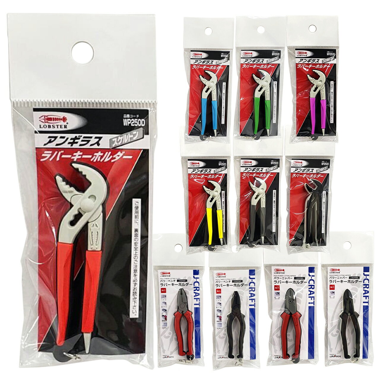 工具 ラバーストラップ アンギラス パワーニッパー パワーペンチ 工具モチーフ ミニチュア エビ印工具 ロブスター LOBTEX 赤 黒 青 黄 緑 紫 灰 レッド ブラック ブルー イエロー グリーン バイオレット パープル グレー スモーク ラバーキーホルダー