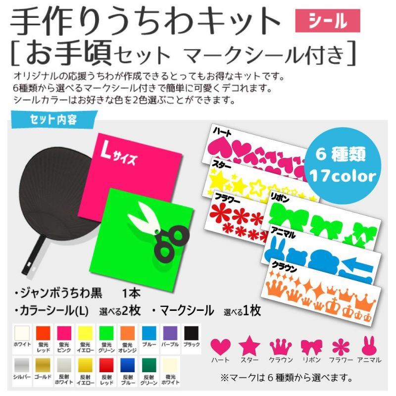 シール 手作りうちわキット(お手頃セット・マークシール付き)【うちわ1本】【カラーシールL 2枚】【説明書】【選べるマークシール1枚】 コンサートうちわ 応援うちわ うちわ オーダーメイド 手作り