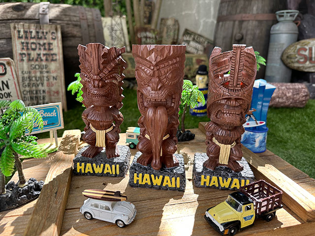 ハワイを守る神様として昔から人々に愛されてきたティキを、レジン製オブジェで再現したってのがコチラ! ハワイに行くと、ABCストアなんかにズラッと並んでる光景を目にしますが、意外と現地に行った時って、こういうベタなアイテムは目にとまらず、むしろ帰国してしばらくしてから欲しくなるってヤツですよね! 大好きなハワイを感じさせてくれるコーナーを自宅の片隅に作りたいって時に、ティキのオブジェを背景にディスプレイするとメチャクチャ雰囲気が出るんです。 色んな表情を持つティキにはそれぞれ意味があって、人気の恋愛から幸運、調和など・・・・それぞれの神様がその運気を運んできてくれると信じられています。 ハワイの守り神を飾ってハワイらしく演出して、なおかつ部屋の中に良い運気を呼び込むなんてハワイ好きにとっては最高でしょ! 大好きなハワイをいつも身近に感じられる・・・・そんな空間作りに神様ティキが駆けつけます(o ̄∇ ̄)o サイズ:横7.7cm×奥行き6.2cm×高さ18cm(約) 材質:レジン 【知っておいて頂きたいこと】 多少のカケ、剥げは在庫分すべてに見られますので製品仕様となります。予めご了承願います。類似商品はこちらハワイの神様 ヴィンテージティキ レジン製オブ3,300円ハワイの神様 ヴィンテージティキ レジン製オブ3,300円ハワイの神様 ヴィンテージティキ レジン製オブ9,900円ハワイの神様 ティキ レジン製オブジェ Sサイ1,540円ハワイの神様 ティキ レジン製キーホルダー 1,100円ハワイの神様 ティキ レジン製オブジェ Mサイ2,310円ハワイの神様 ティキ レジン製オブジェ Sサイ1,100円ハワイの神様 ティキ レジン製オブジェ Mサイ2,310円メネフネ ポリレジンスタチュー アメリカン雑貨7,480円新着商品はこちら2025/11/24映画 グレムリン ギズモ オフィシャル ステッ396円2025/11/24映画 チャイルドプレイ チャッキー オフィシャ396円2025/11/24映画 チャイルドプレイ2 チャッキー オフィシ396円再入荷はこちら2025/11/21爽快ミント味がずっと続くアメリカの爪楊枝 ア550円2025/11/21爽快ミント味がずっと続くアメリカの爪楊枝 ア1,100円2025/11/21アメ雑屋さんがショップ什器としてよく使う アメ4,180円2025/11/24 更新