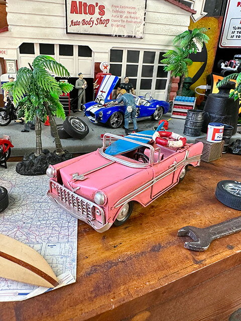 よく一緒に購入されている商品ダッシュボードティキ アメリカン雑貨 アメリ2,970円ハワイアンフラドール フィギュア 単品 アメ3,300円南の島のヤシの木 オブジェ アメリカン雑貨 1,320円50年代アメ車の「テールフィンブーム」の火付け役、ベルエア! 中でも最も巨大化したテールフィンを持つのが、このブリキオブジェのモデルになってる57年式です。 より大きく、そしてゴージャスに・・・・その姿はもはや車と言うよりロケット! まさにミスターフィフティーズカーと呼べる1台です。 そんなアメリカンドリームを世界中に見せつけてくれた歴史に残る傑作車を、ブリキ素材で再現した1台がこちら! 海沿いの道が似合う爽快なオープンモデルになってて、サーフボードを載っけてこれから海に出かけるみたい! こんなちょっとしたストーリーを想像できるオブジェって、飾っていても楽しいものです。 キャンディタワーで人気の「ヤシの木のオブジェ」を周りに飾って、西海岸の景色を部屋の片隅に作るなんて、どう、良いアイデアじゃない? 窓際やテーブルにウエストコーストの風をどうぞ!( ̄ー ̄)ニヤリ☆ サイズ:横6.5cm×縦16.5cm×高さ5.6cm(約) 材質:ブリキ類似商品はこちらサーフクラシックミニ ブリキオブジェ アメリ2,970円クラシック ボルボ240 ブリキオブジェ サー2,970円サーフ仕様フィアット500 チンクエチェント 2,970円クラシック ボルボ240 ブリキオブジェ サー2,970円サーフ仕様フィアット500 チンクエチェント 2,970円サーフトラック ブリキオブジェ アメリカン雑貨3,300円サーフクラシックミニ ブリキオブジェ アメリ2,970円ハワイアン クリスマス ワーゲンバス ミニ ブ1,980円ハワイ ノースショア ブリキ看板 アメリカン雑3,080円新着商品はこちら2025/11/24映画 グレムリン ギズモ オフィシャル ステッ396円2025/11/24映画 チャイルドプレイ チャッキー オフィシャ396円2025/11/24映画 チャイルドプレイ2 チャッキー オフィシ396円再入荷はこちら2025/11/21爽快ミント味がずっと続くアメリカの爪楊枝 ア550円2025/11/21爽快ミント味がずっと続くアメリカの爪楊枝 ア1,100円2025/11/21アメ雑屋さんがショップ什器としてよく使う アメ4,180円2025/11/24 更新