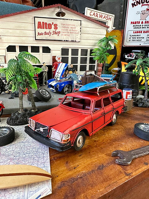 クラシック ボルボ240 ブリキオブジェ サーフ仕様 (レッド) アメリカン雑貨 アメリカ雑貨 ハワイアン雑貨 ハワイ雑貨 ハワイグッズ ハワイアングッズ おしゃれ ショップインテリア