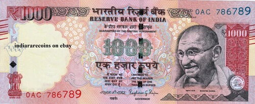 インド 1000 RS 触覚マーク ノベルナンバー 2015 差し込みなし紙幣 UNC 新品