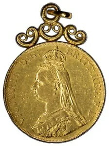 エステート ジュエリー 22K ゴールド 1899 フル ソブリン ソリッド 18K ゴールド ペンダント