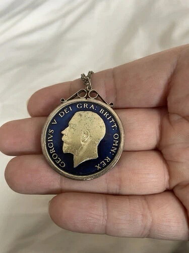 1918年 キングジョージ5世 シルバーハーフクラウンコイン エナメル加工 ペンダント ジュエリー