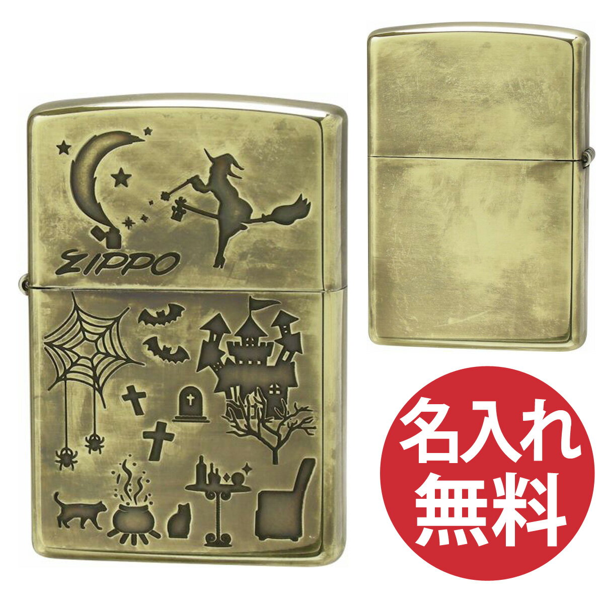 【名入れ無料】zippo ジッポ ジッポー Antique style A・Witch 魔法使い ブラス ユーズド加工 zippoレギュラー