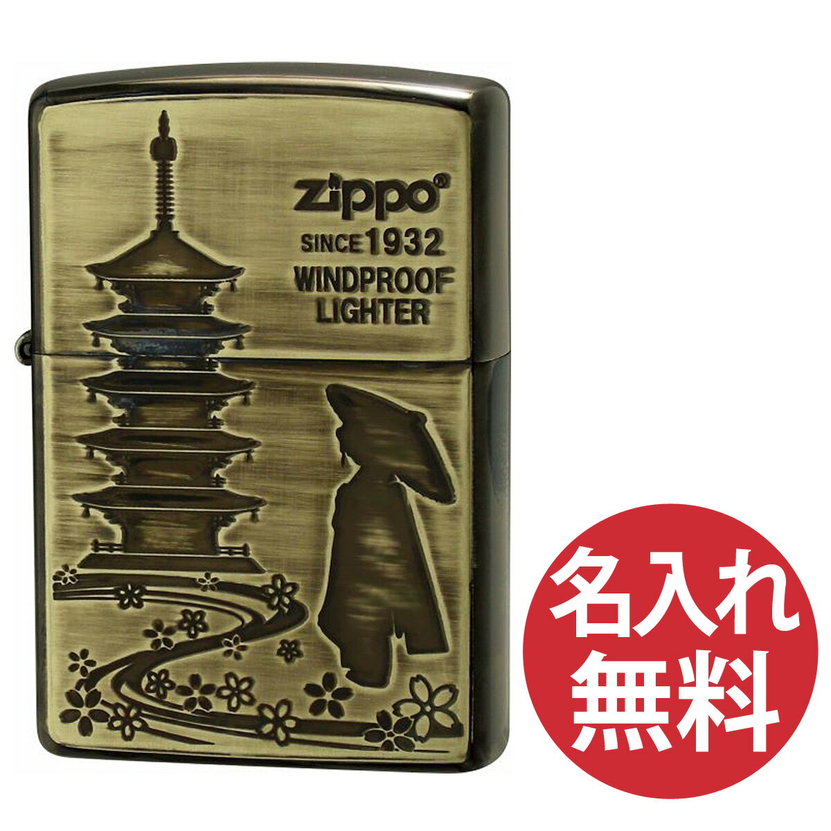 【名入れ無料】zippo ジッポ ジッポー Antique style AW・五重塔 芸者 和風 選べる【単品】【ギフトセットBOX付き】zippoレギュラー