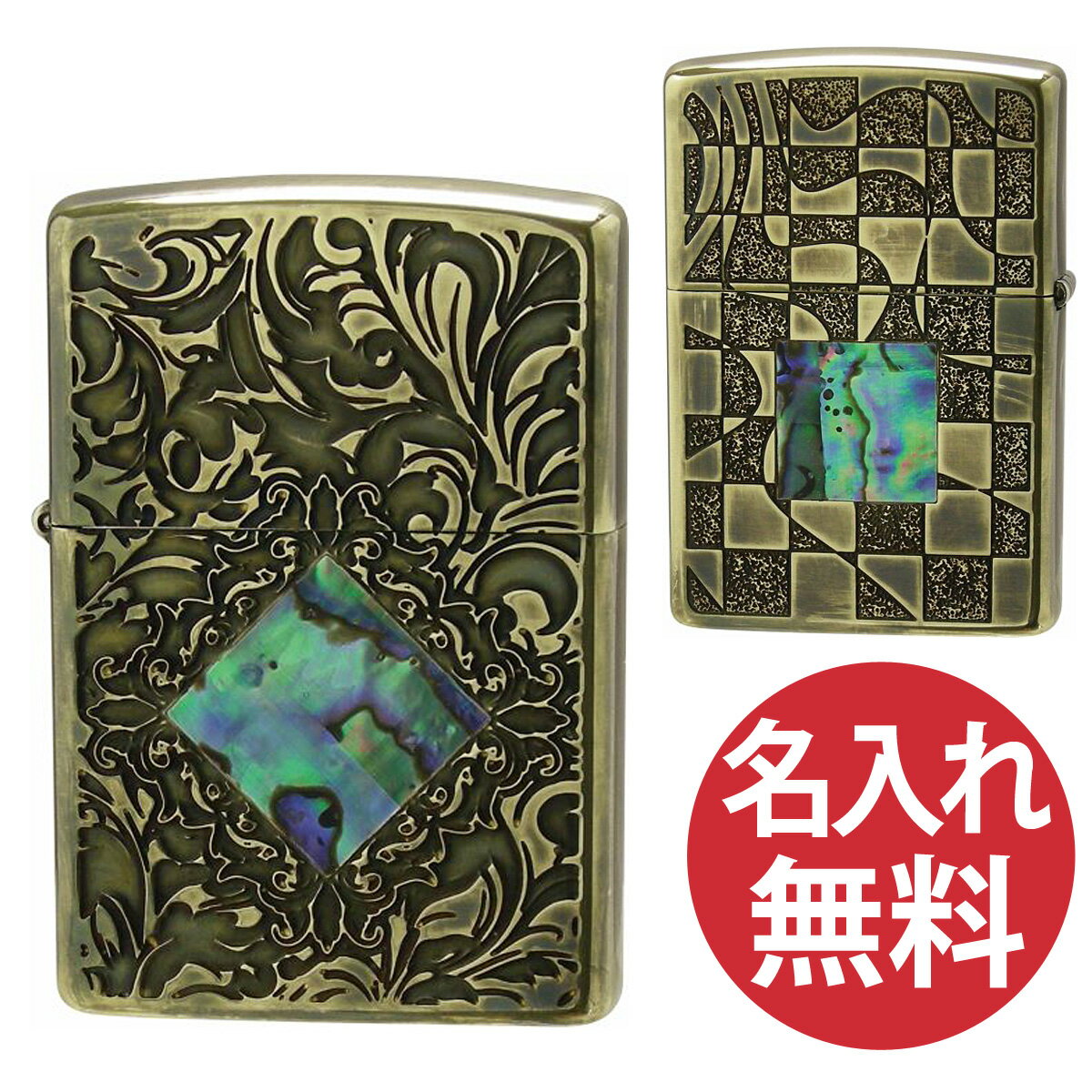 【名入れ無料】zippo ジッポ ジッポー Antique style A・Retro & Modern ブラス アラベスク ユーズド加工 貝貼り 選べる【単品】【ギフトセットBOX付き】zippoレギュラー