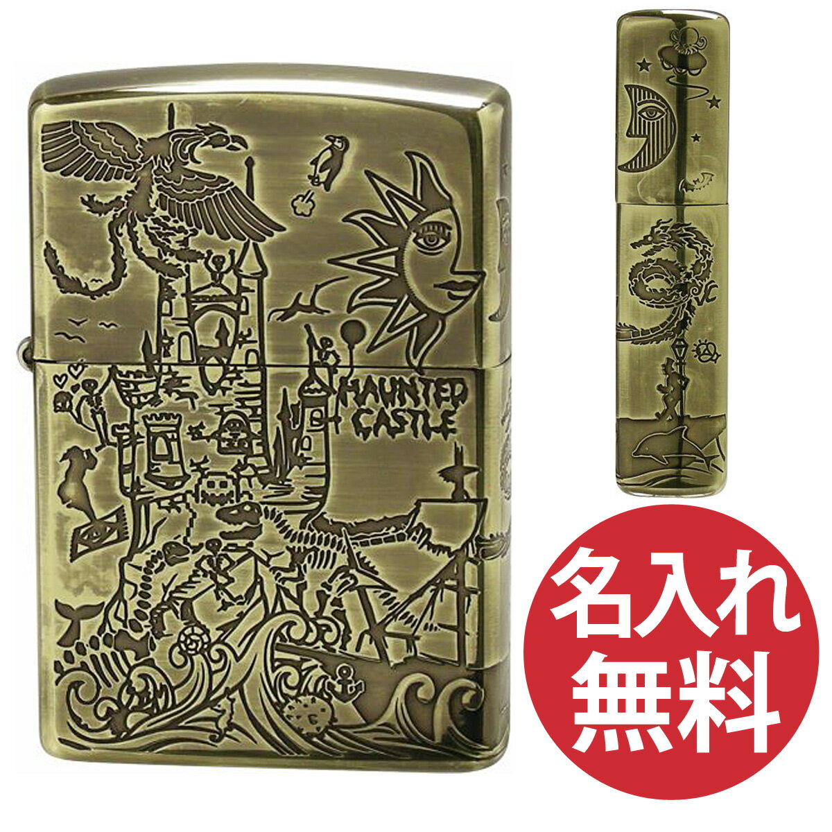 【名入れ無料】zippo ジッポ ジッポー Antique style A・HAUNTED CASTLE 幽霊城 ゴースト 選べる【単品】【ギフトセットBOX付き】zippoレギュラー