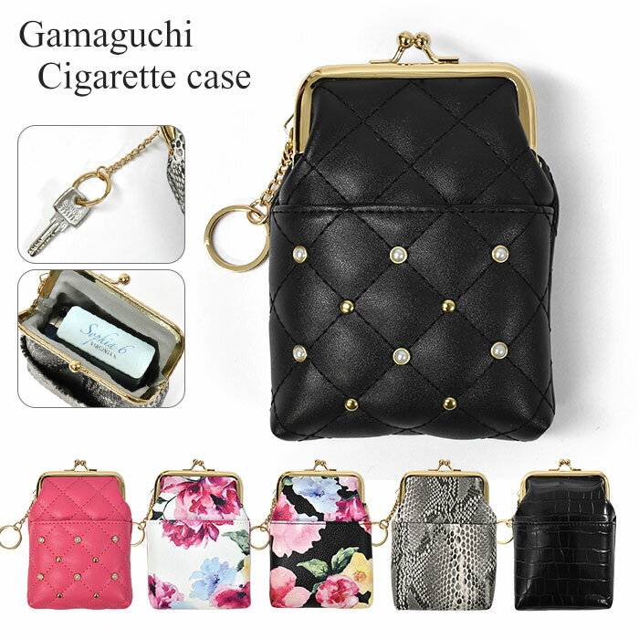 フェイクレザー キルティング 花柄 パイソン クロコ キーリング付き がま口 シガーケース /シガレットケース シガレットポーチ たばこ入れ ポーチ タバコケース ロング たばこ ケース ロングポーチ 小物入れ ミニポーチ リップ 口紅 かわいい 可愛い おしゃれ レディース/