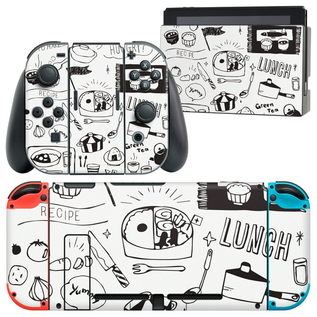 igsticker Nintendo Switch 用 デザインスキンシール 任天堂 ニンテンドー スイッチ 専用 本体ドック Joy-Con Joycon ジョイコン 専用 ゲーム機 カバー アクセサリー フィルム ステッカー 016500 お弁当 モノクロ 手書き 食べ物 ご飯