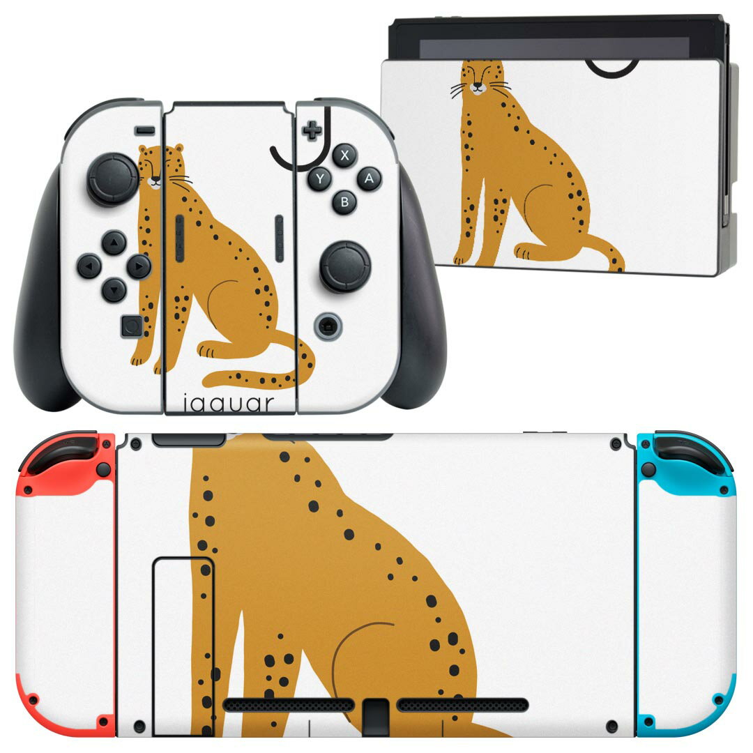 igsticker Nintendo Switch 用 デザインスキンシール 任天堂 ニンテンドー スイッチ 専用 本体ドック Joy-Con Joycon ジョイコン 専用 ゲーム機 カバー アクセサリー フィルム ステッカー 019942 動物 アルファベット J jaguar ジャガー