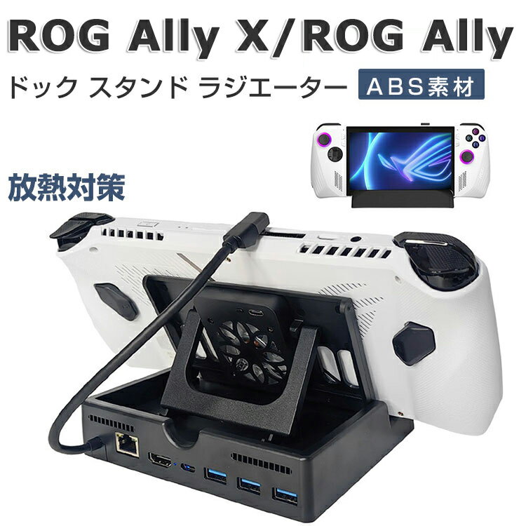 ASUS ROG Ally ラジエーター ケース ドック スタンド 放熱対策 冷却ファン付き スタンド 小型 4K 直接にTV出力 3つのUSBポート Type-Cポート 有線ハンドル対応 自宅 旅行 パーティー rog ally ケース