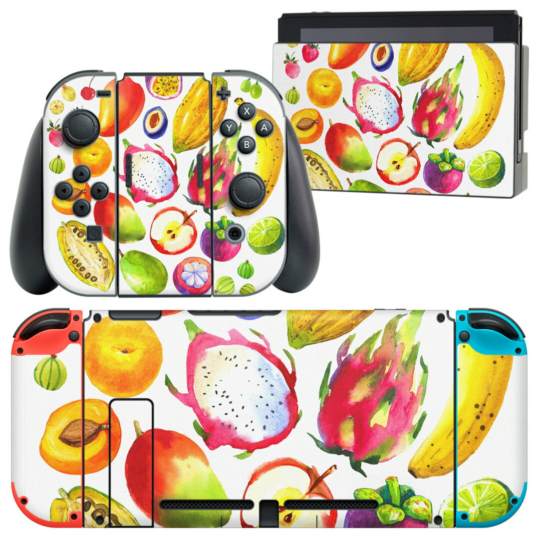 igsticker Nintendo Switch 用 デザインスキンシール 任天堂 ニンテンドー スイッチ 専用 本体ドック Joy-Con Joycon ジョイコン 専用 ゲーム機 カバー アクセサリー フィルム ステッカー 004075 果物 イラスト カラフル