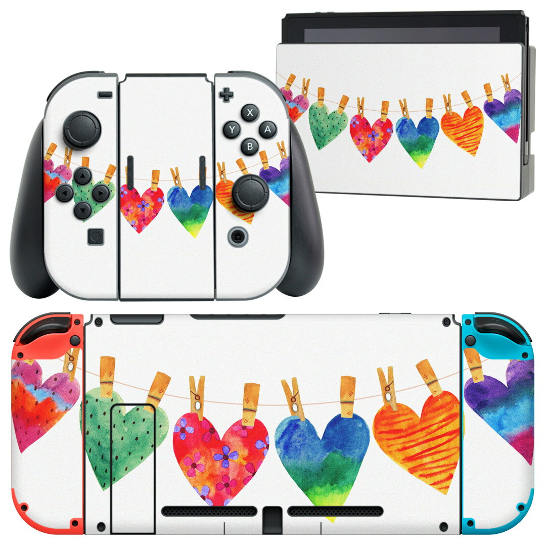 igsticker Nintendo Switch 用 デザインスキンシール 任天堂 ニンテンドー スイッチ 専用 本体ドック Joy-Con Joycon ジョイコン 専用 ゲーム機 カバー アクセサリー フィルム ステッカー 014782 ハート ガーランド カラフル