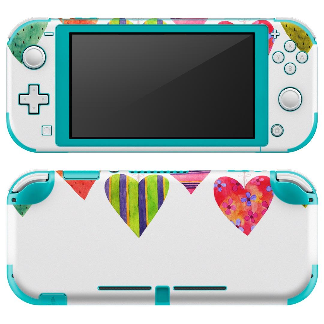 igsticker Nintendo Switch Lite 専用 デザインスキンシール 全面 ニンテンドー スイッチ ライト 専用 ゲーム機 カバー アクセサリー フィルム ステッカー エアフリー 014781 ハート ガーランド カラフル
