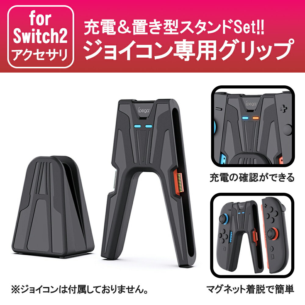 \即日発送/ Switch2 対応 スイッチ2 グリップ アクセサリー 周辺機器 ジョイコン 充電 Joy-Con 充電器 同時充電 コントローラー 収納スタンド付き 任天堂 機能 ブラック 充電 USB-C 2in1充電コード LED 軽量設計 携帯用 ダブルチャージ対応